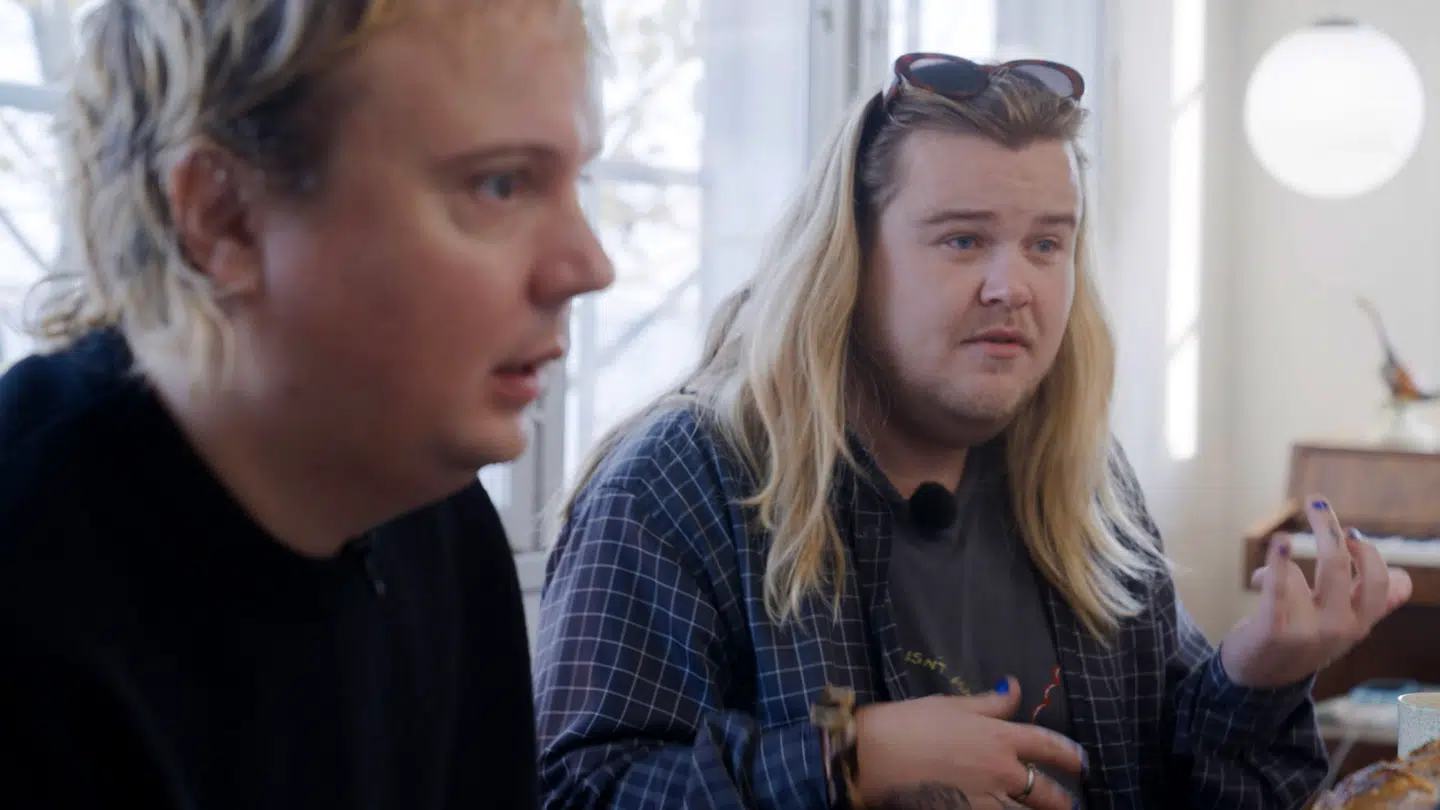 I cirka 30 minutter ser vi Odbjerg og holdet tale frem og tilbage om, hvordan deres sang skal være, mens de prøver sig frem på instrumenterne.