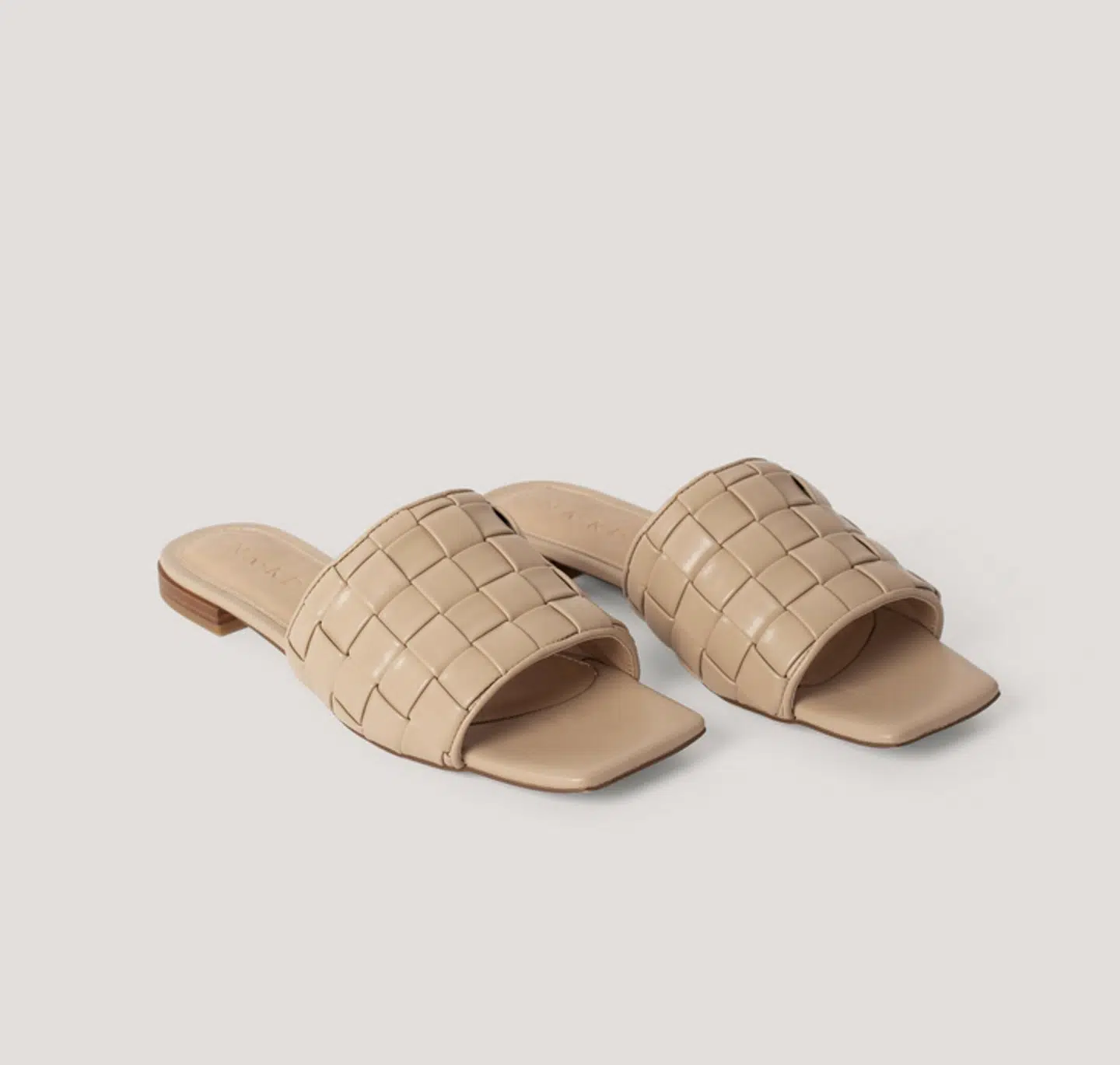Flade sandaler i flet med lige tå. Hælhøjde 1,5 cm. Farve: Beige
