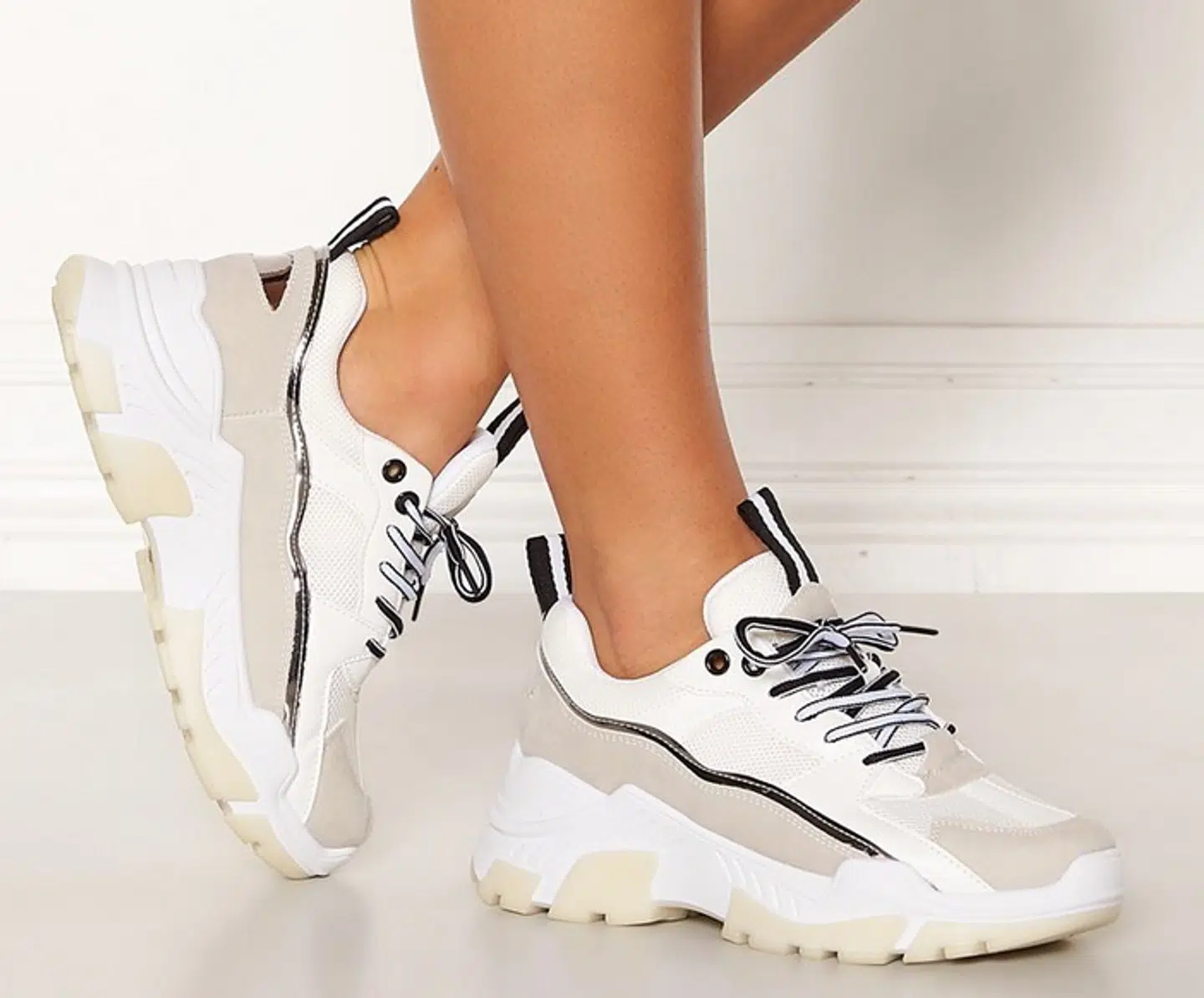 Superflotte sneakers fra SOWHAT. Skoene er i et trendy design med dekorative detaljer. Høj sål. Snøring foran. Dekorative detaljer. Sålhøjde: 4,5 cm. Farve : Hvid/grå