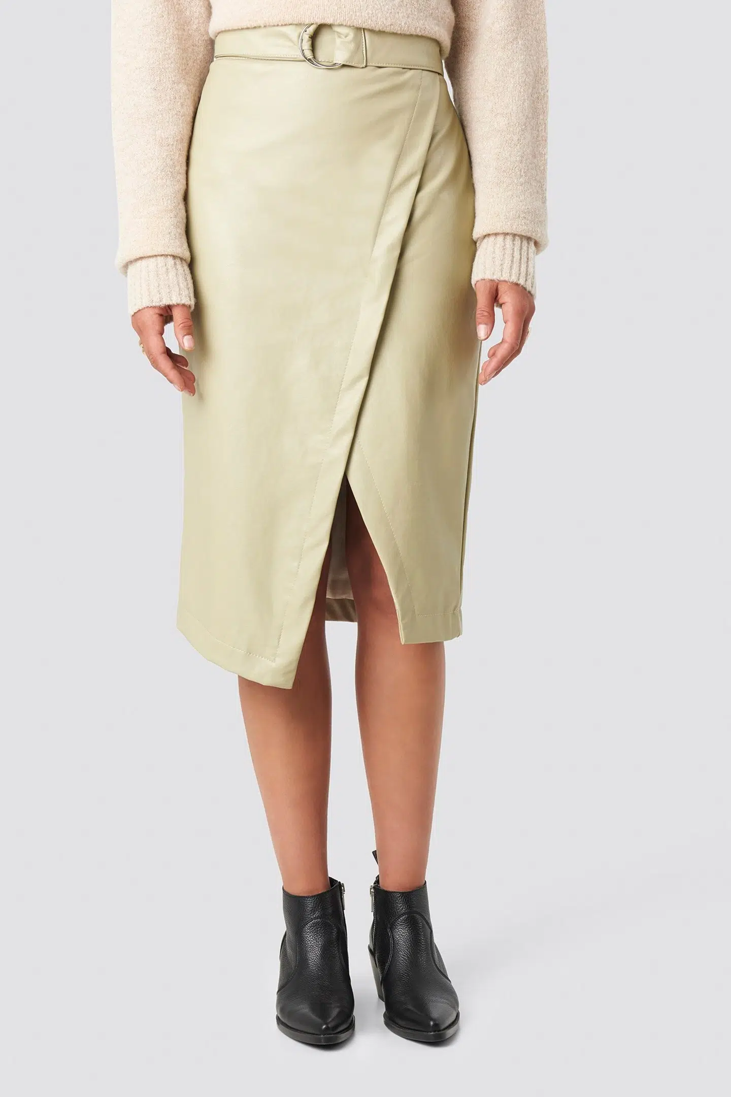 Overlapped Faux Leather Midi Skirt - Tina Maria x NA-KD, Beige