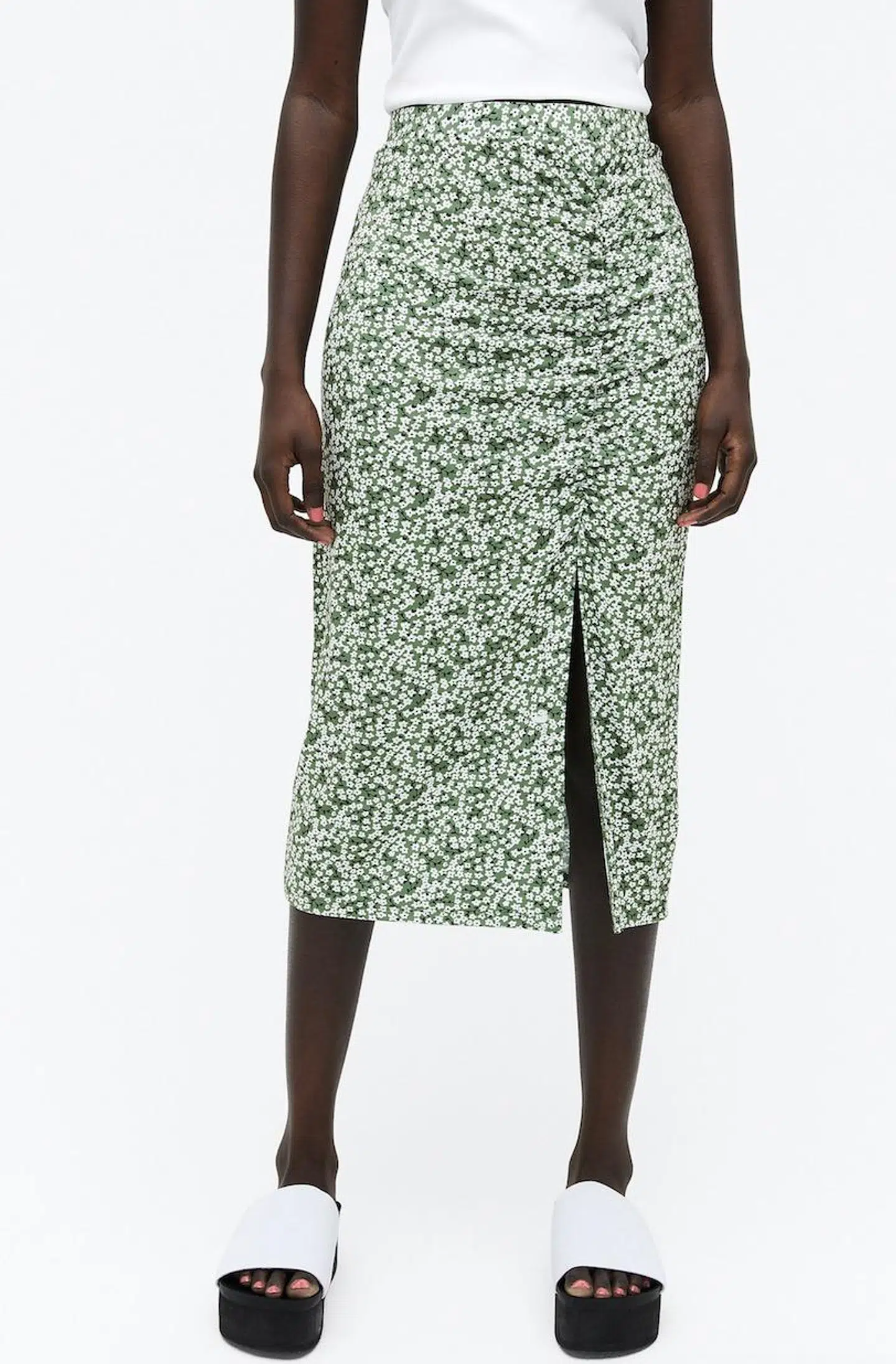 Ruched pencil Skirt Monki, Green floral print
