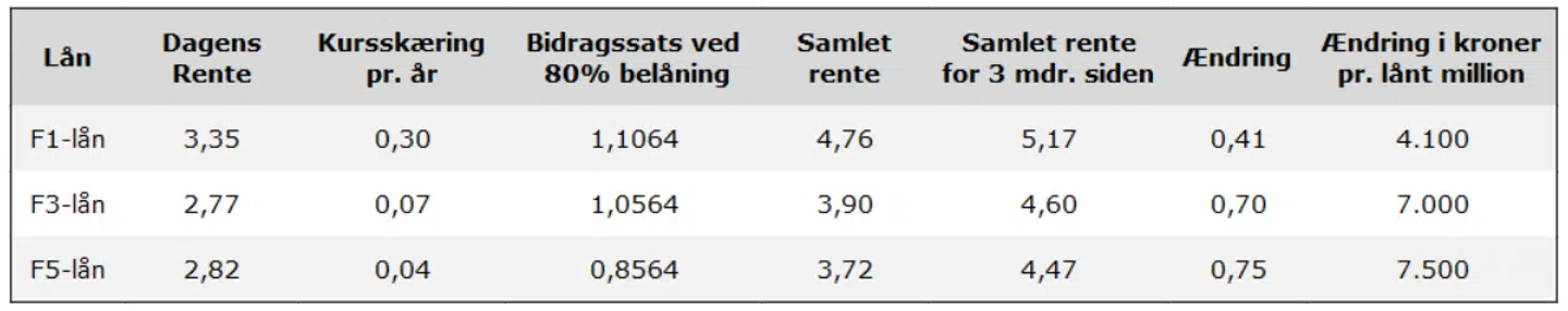Sammenligning af renten i dag med for 3 måneder siden