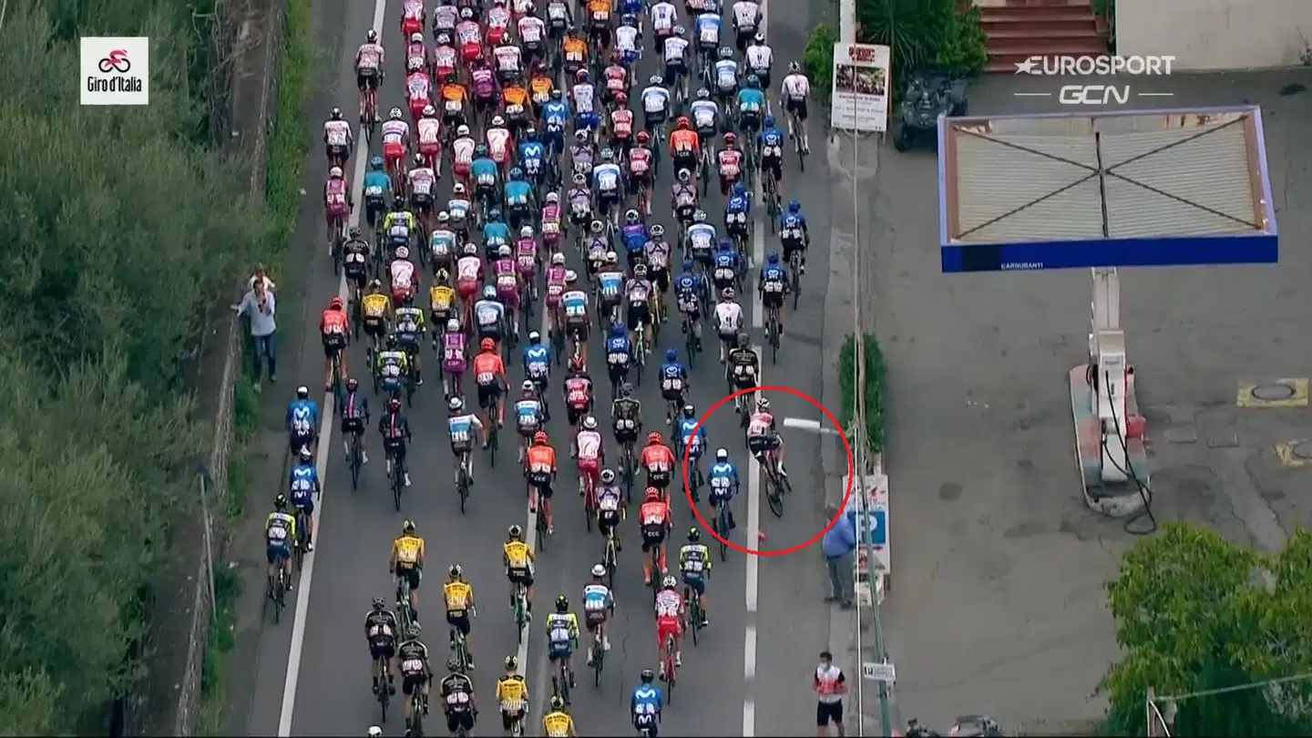 »Han har brækket sit kindben og fået et snit under hagen. Han er ved bevidsthed, men han husker ikke styrtet – eller at han er med i Giro d'italia. Nu venter røntgenscanninger,« siger Citracca en time efter dramaet til Rai 2.