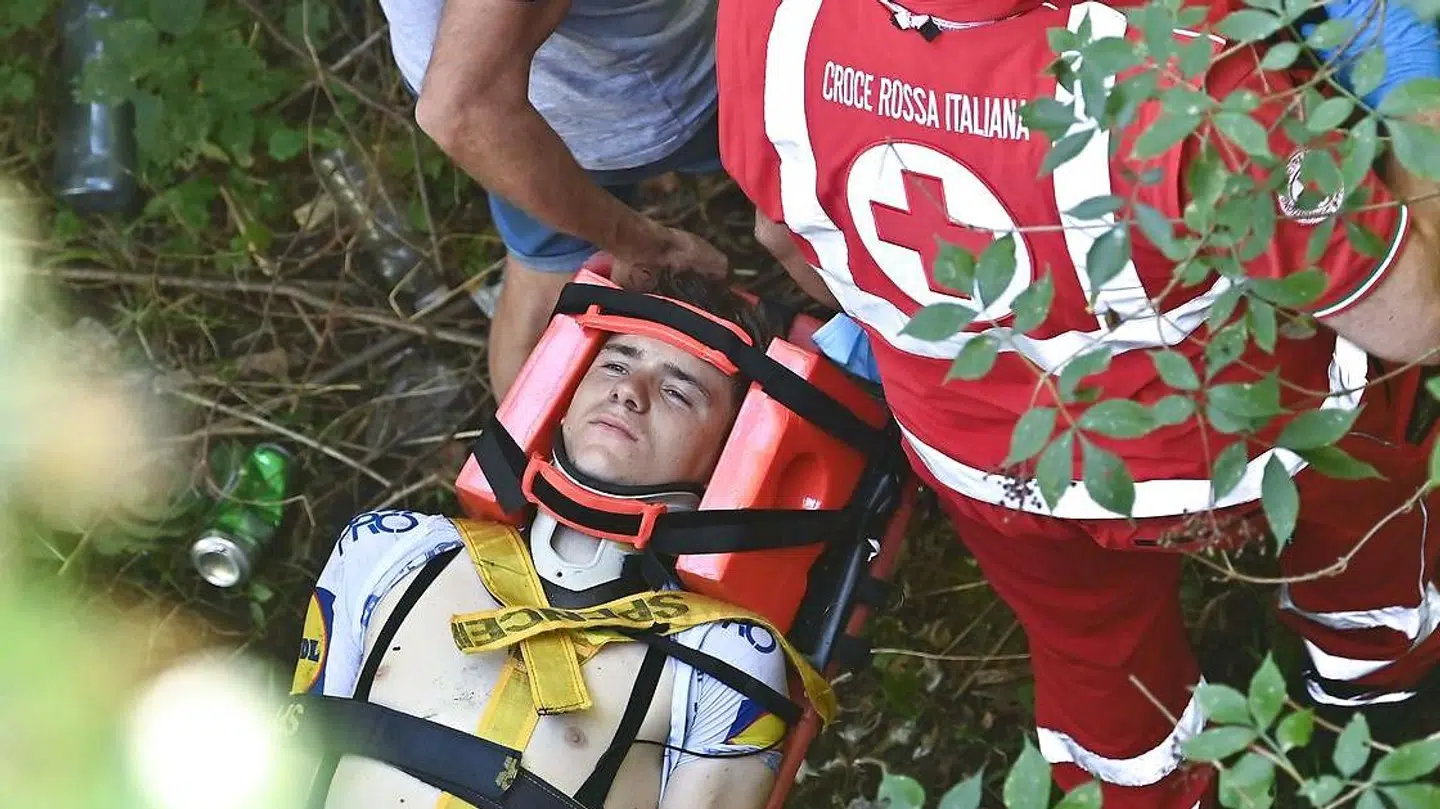 »Jeg havde et brud på en vene i min lyske, som lægerne heldigvis kunne operere med det samme. Hvis ikke de havde set det på skanningerne, så ville jeg have blødt ihjel i det ben,« siger Remco Evenepoel ifølge feltet.dk.