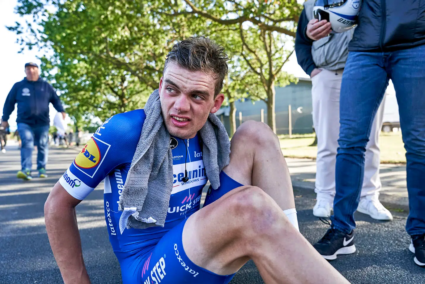 »Vi havde afleveret Julian (Julian Alaphilippe, red.) og resten af holdet, som vi skulle, og skulle egentlig bare rulle til mål, og så kører han (Kasper Asgreen, red.) direkte ind i en midterhelle, som han simpelthen overser.«