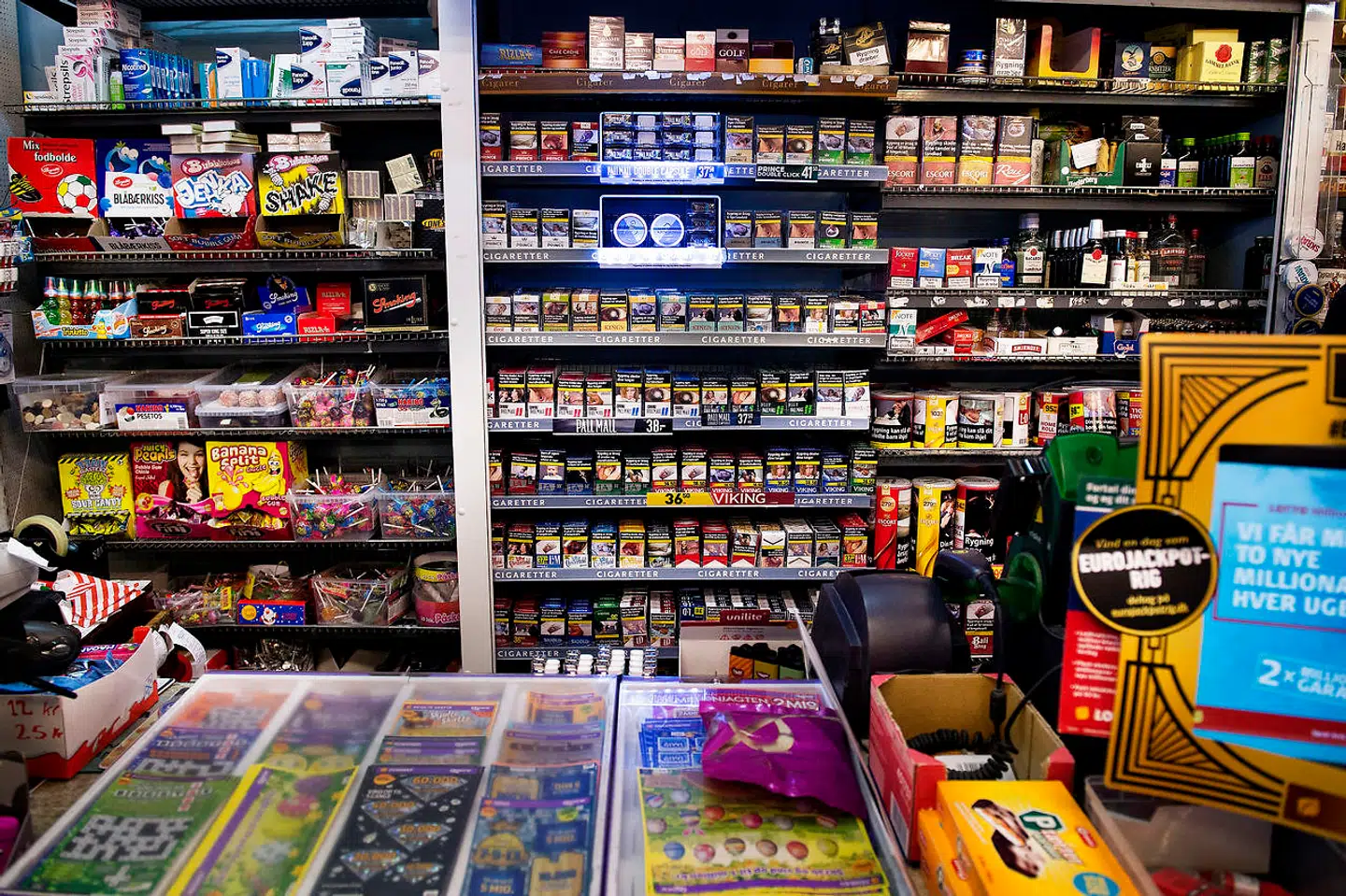 Og apropos salg: En af de varer, som kioskerne lever højt på at sælge, er den seneste tid blevet usynlig i mange supermarkedskæder. Men her står kioskerne fast.