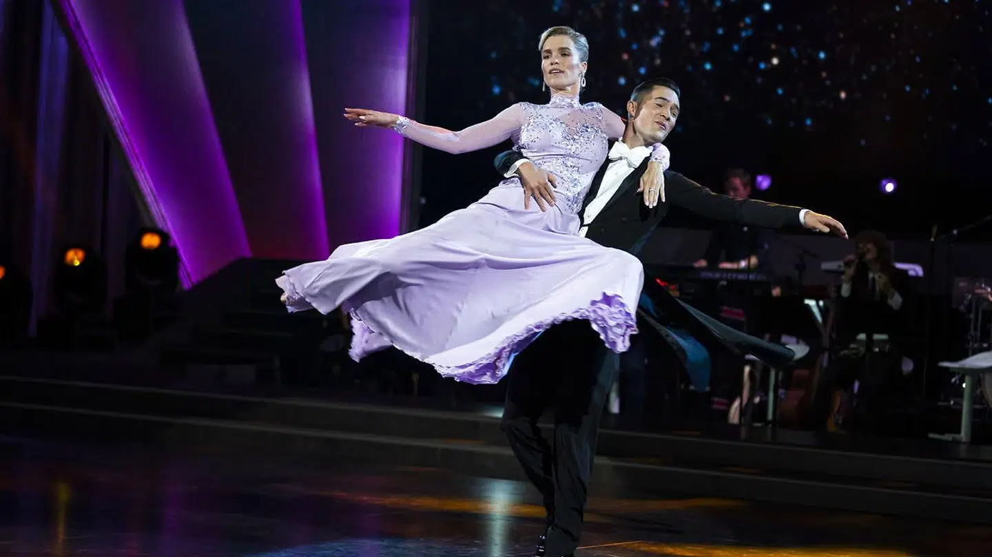 Hendes dansemakker, Frederik Nonnemann fortæller, at netop quicksteppen, som de dansede denne fredag, er en dans med hurtige hop, og det er belastende for knæene.