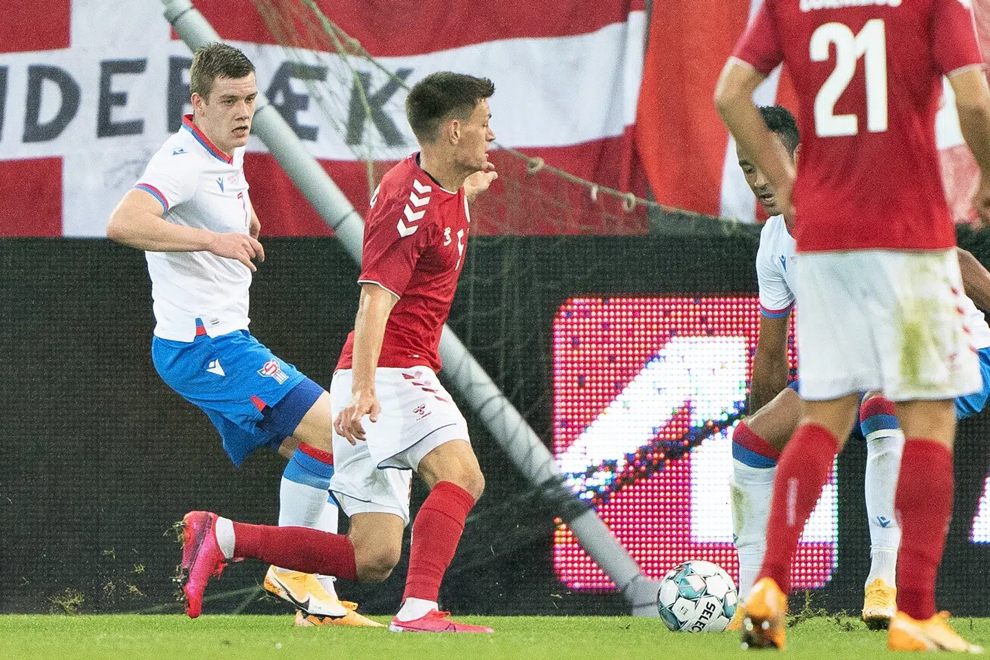 Midt i anden halvleg var Andreas Skov Olsen blevet skiftet ind til sin anden landskamp. På det tidspunkt var stillingen 3-0, og det sluttede kampen også.