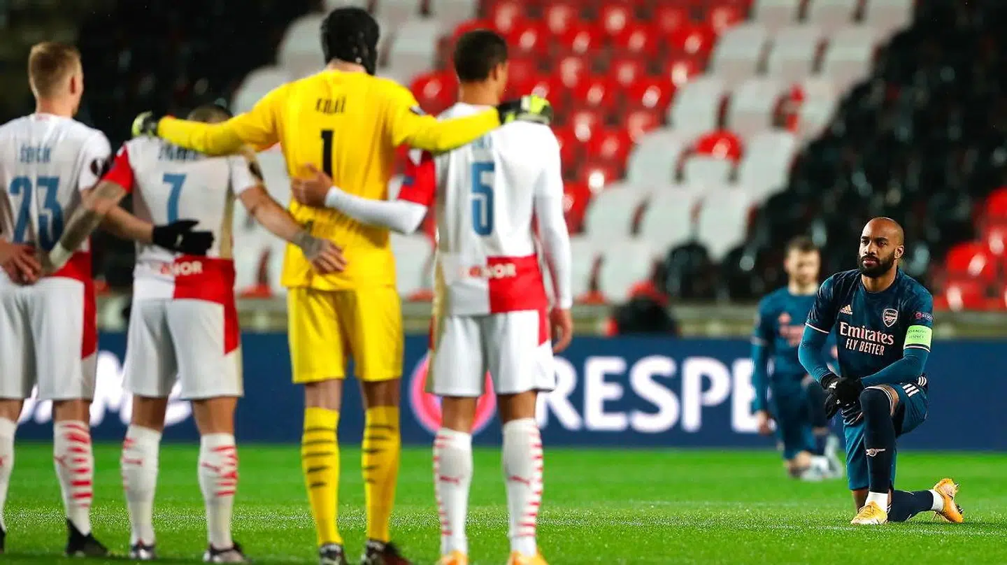 Men den markering blev fuldstændig overskygget af Alexandre Lacazette, der gik helt frem foran Prag-spillerne og knælede som tegn på sin modstand mod global racisme.