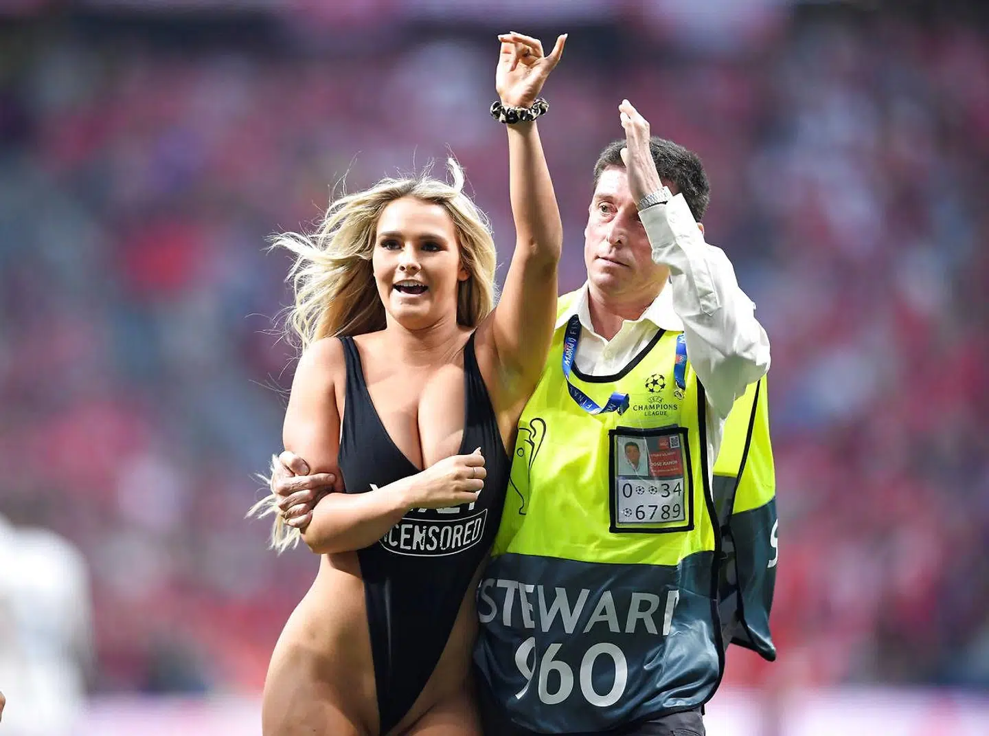 Hun blev verdensberømt, da hun løb på banen i en meget beskeden badedragt under Champions League-finalen i år.