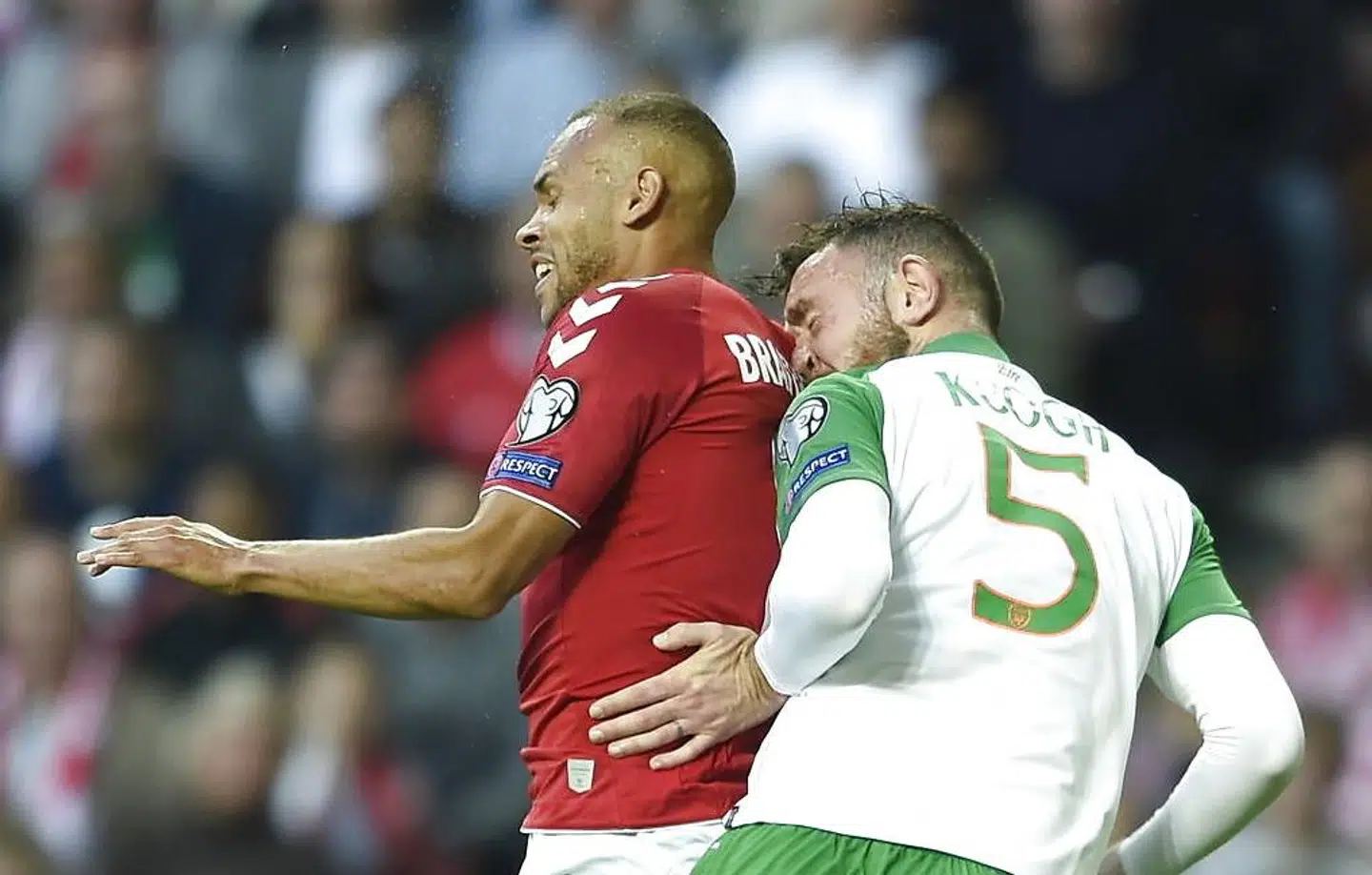 Her fik danskerne sig nemlig en lussing, da forsvarsspilleren Shane Duffy var gået med frem på et frispark. Han steg til vejrs og headede Irland på 1-1 på en af irernes få chancer i kampen.