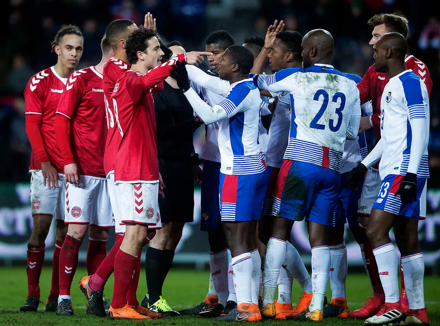 Han kunne have beholdt jakkesætsbukserne på i første halvleg, men kom så i centrum, da han fik knopper i brystet af Blas Perez. Det kostede Perez et rødt kort.