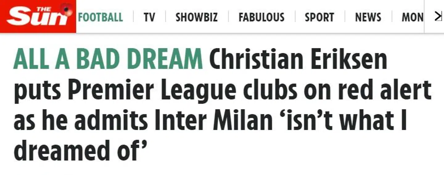 »Jeg koncentrerer mig om at spille noget fodbold, og så må vi se, når vinduet åbner, hvad der skal ske, eller hvad der ikke skal ske,« uddyber Eriksen diplomatisk og en smule kryptisk i interviewet, som er citeret vidt og bredt.