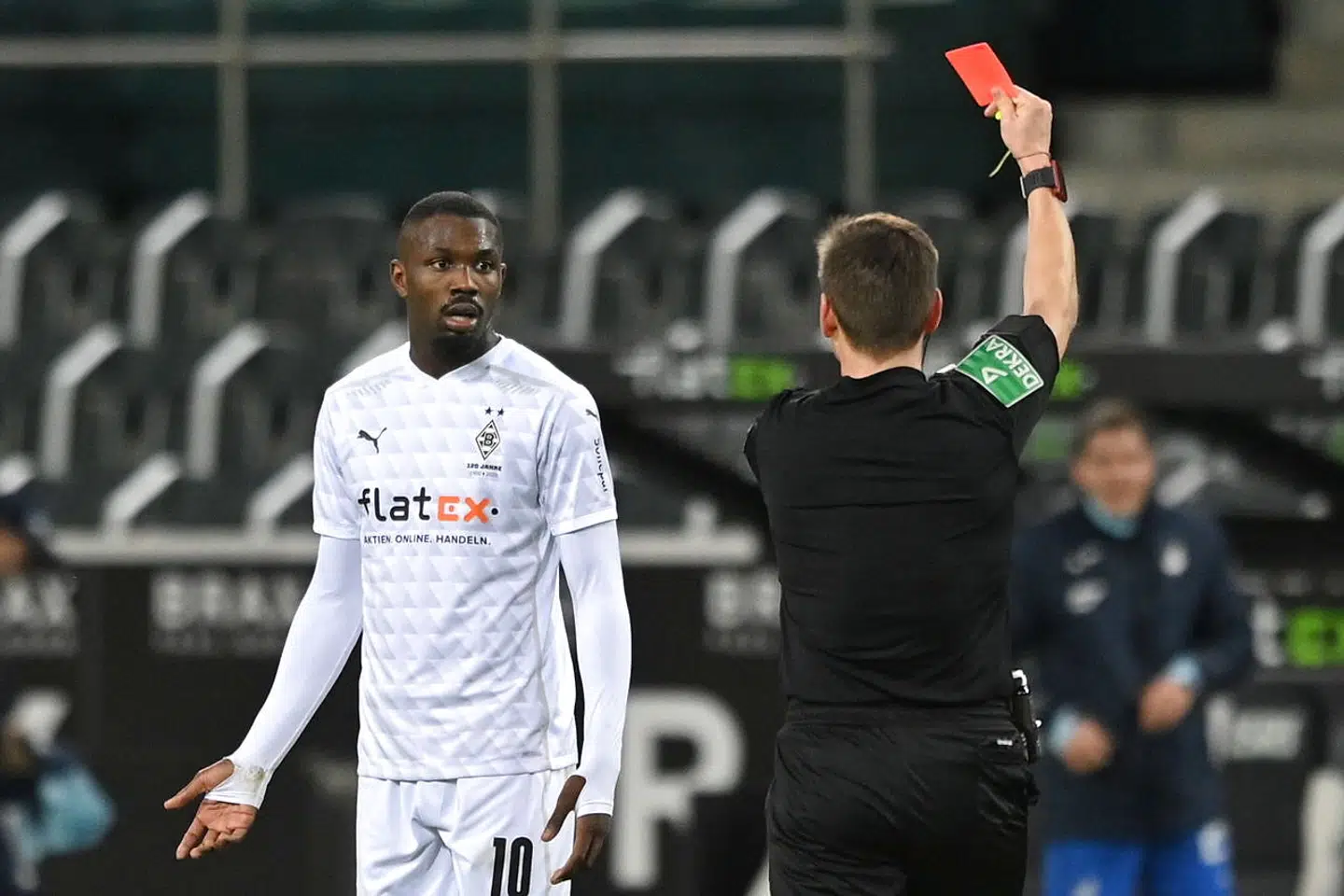 Borussia Mönchengladbachs franske profil Marcus Thuram viste sig fra sin grimme side, da han i forrige blev præsenteret for et rødt kort, efter at han havde spyttet Hoffenheim-forsvareren Stefan Posch i ansigtet.