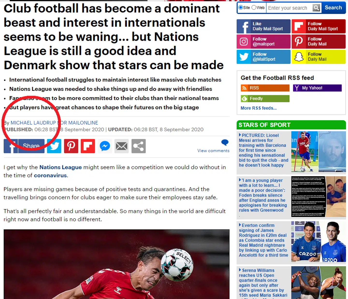 Men det store engelske medie Daily Mail har ikke helt styr på de danske fodboldbrødre - hvilket kun bliver endnu mere penibelt af, at mediet faktisk selv har ansat den yngste Laudrup-bror som skribent.