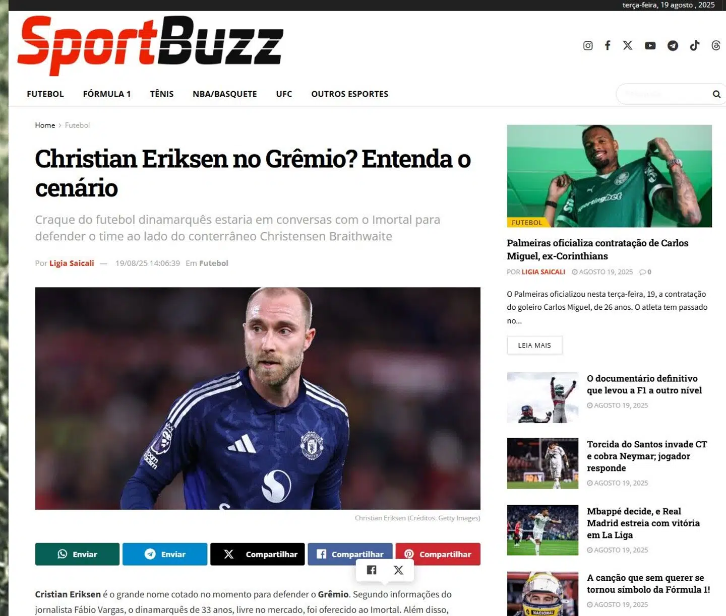Nu melder det brasilianske medie Sportbuzz, at Eriksen skulle være blevet tilbudt til den brasilianske topklub Gremio.