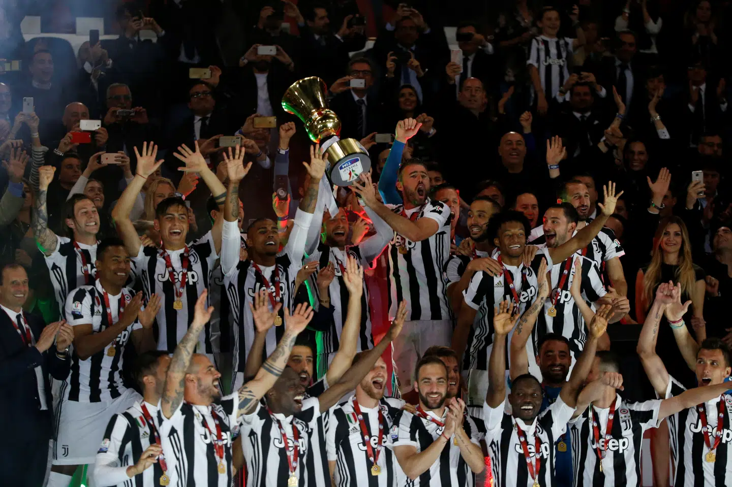 »Sikke en følelse lige nu. Vi vandt pointet i dag, ligesom vi har gjort det hele sæsonen. Ved at stå sammen og kæmpe som et hold. Nu fejrer vi det sammen. Det er ret fedt. Skål,« skriver Lössl.