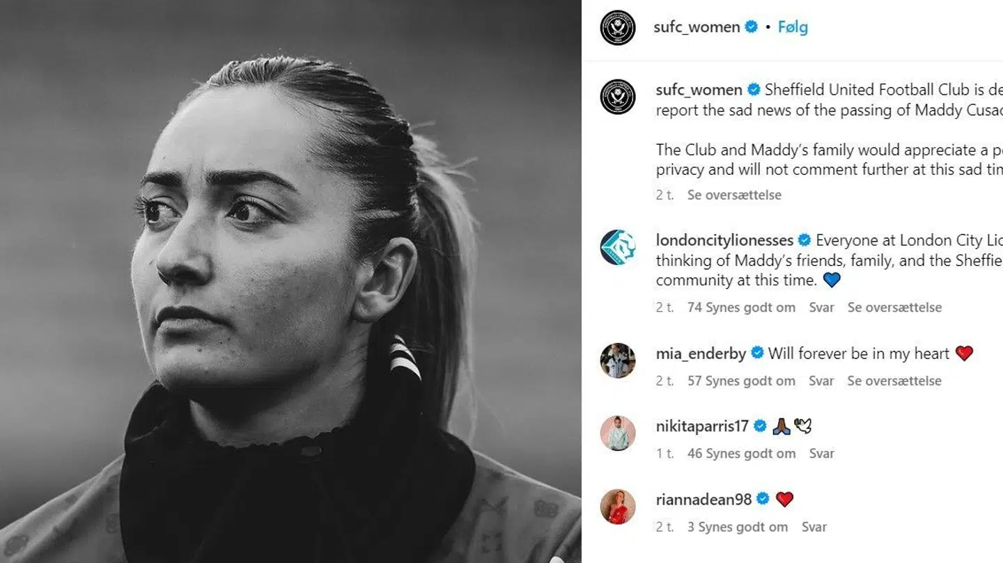 'Sheffield United Football Club er knust over den triste nyhed om Maddy Cusacks død. Klubben og Maddys familie vil sætte pris på en periode med privatliv og vil ikke kommentere yderligere på dette triste tidspunkt,' skriver klubben.