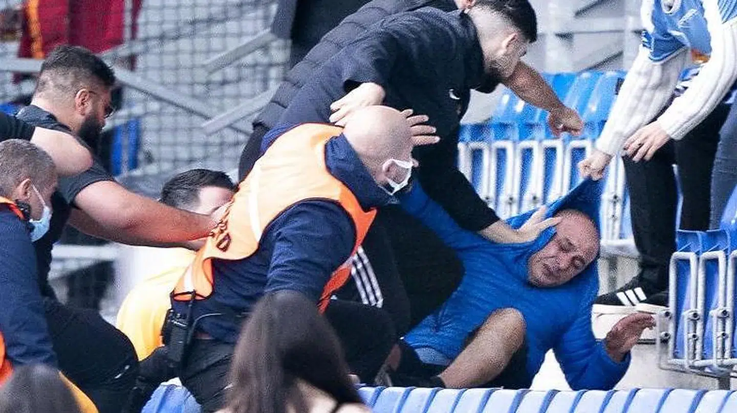 »Der var optræk til meget mere ballade, da flere af dem bevægede sig opad på tribunen, men sikkerhedsfolkene og politiet fik hurtigt styr på dem.«