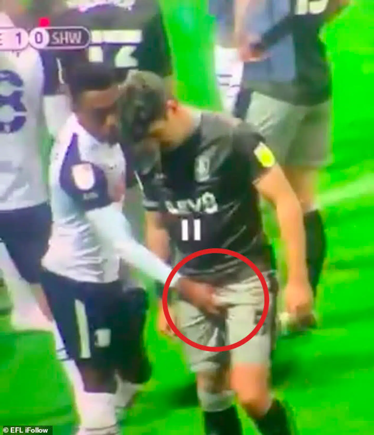 Her tog han nemlig fat i skridtet på Sheffield Wednesday F.C.-spilleren Callum Paterson.
