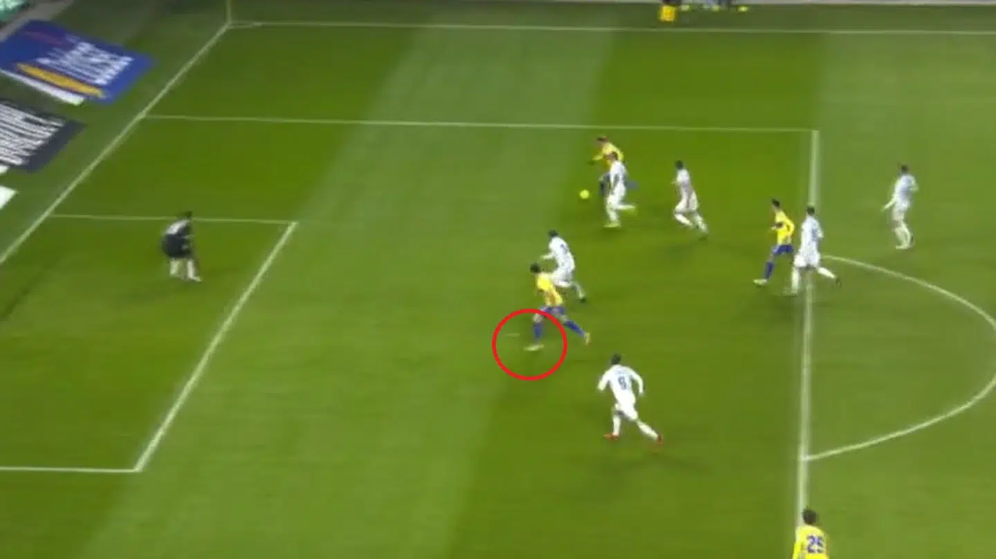 Selv om Uhre var offside, fik hans mål lov til at stå.