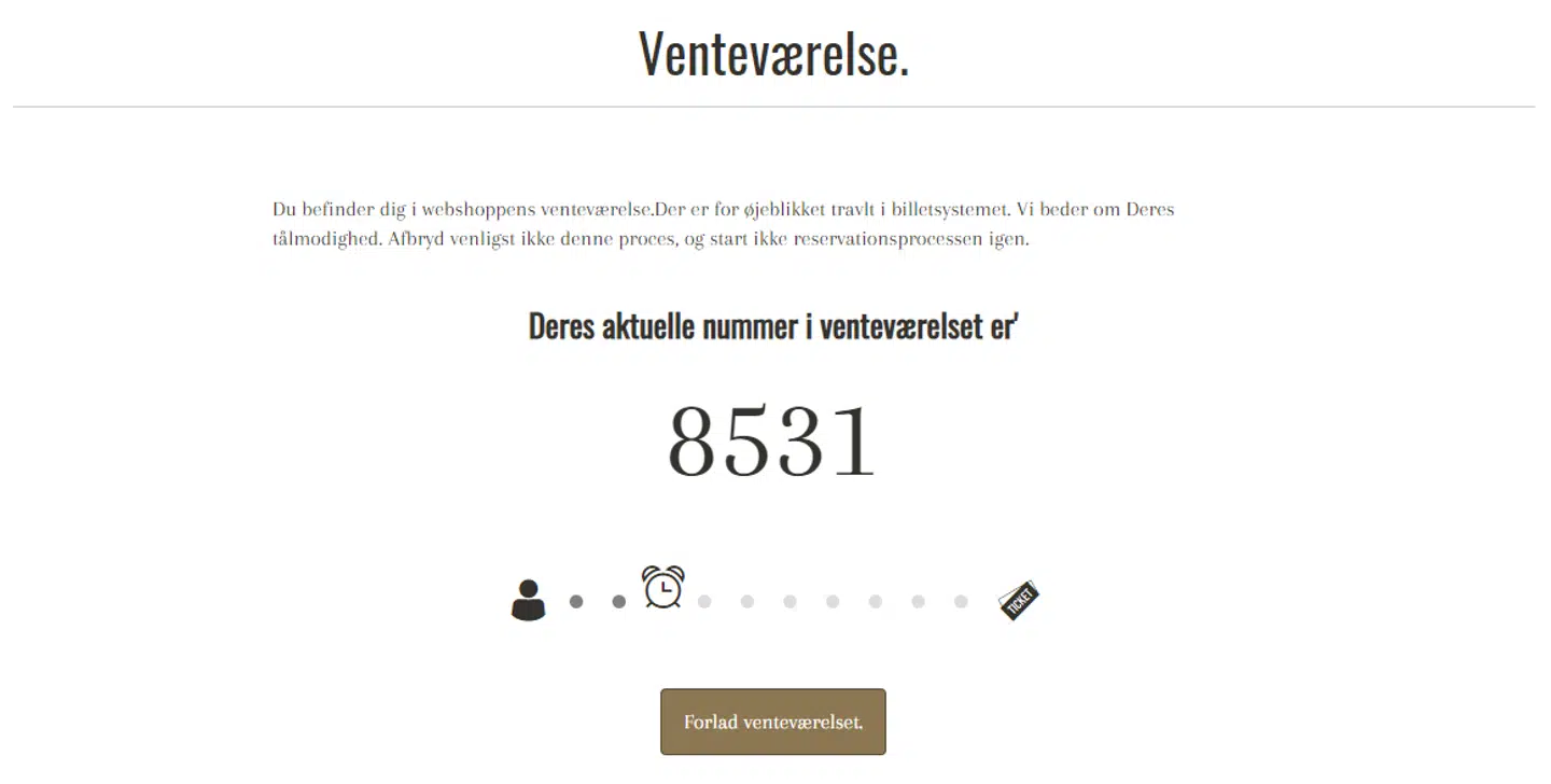 Klikkede man sig ind på linket tidligere, kom man således ind i 'venteværelset', hvor der har været over 8.000 personer i kø. Men ifølge Tivoli var det ikke meningen, at folk skulle lukkes ind før tid, og derfor har man udskudt til klokken 12, så alle har en fair chance for at sikre sig en plads. Det skriver Tivoli på sin Facebook-side.