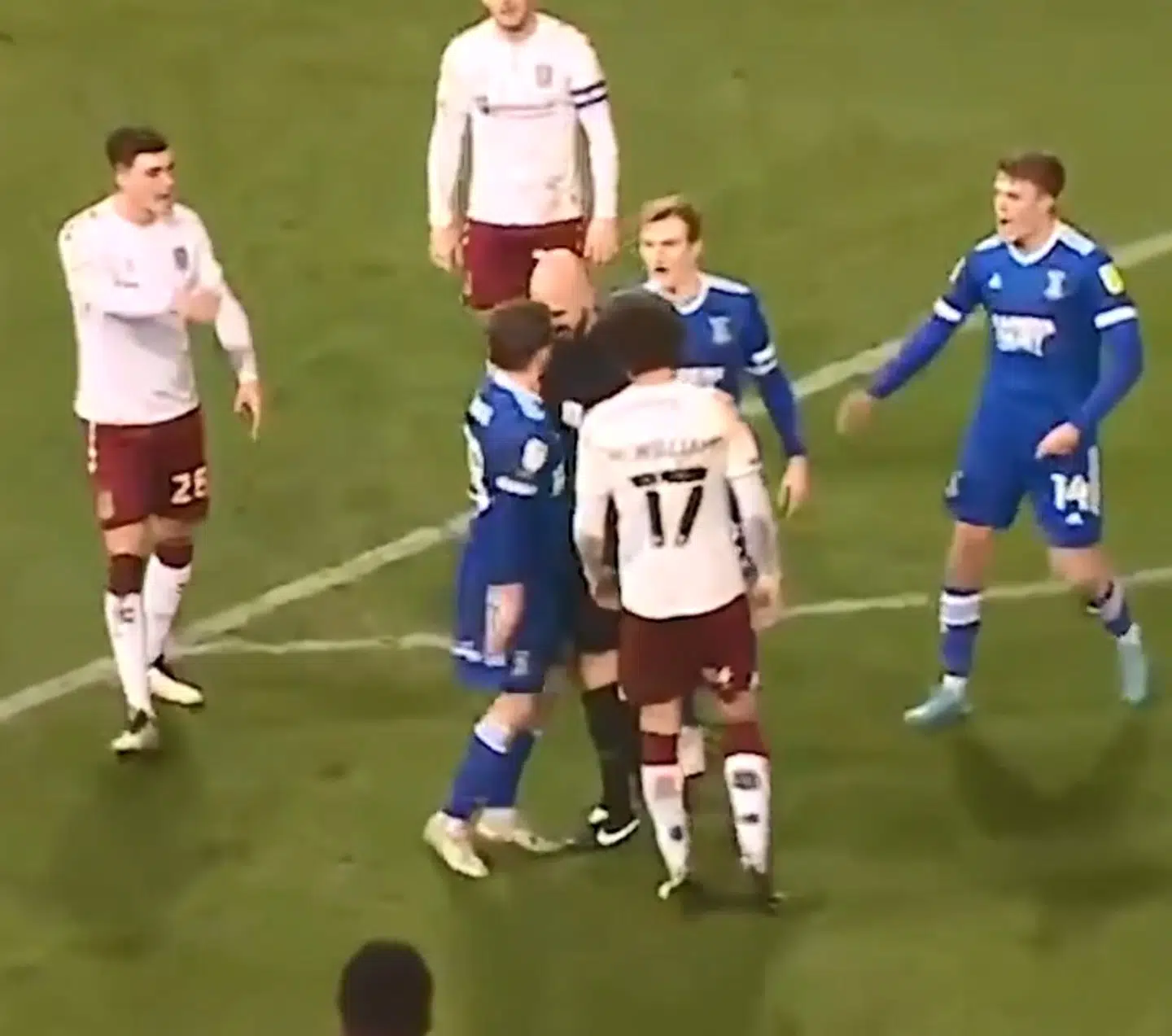 I slutminutterne var dommeren Darren Drysdale nemlig ved at ryge i flæsket på Ipswichs irske landsholdsspiller Alan Judge.
