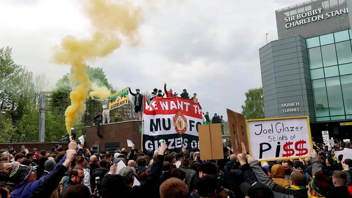 Protesterne var mod Glazer-familien, der har ejet Manchester United siden 2005. Fansene mener, at de kun tænker på penge og sig selv – og ikke på klubben som helhed.