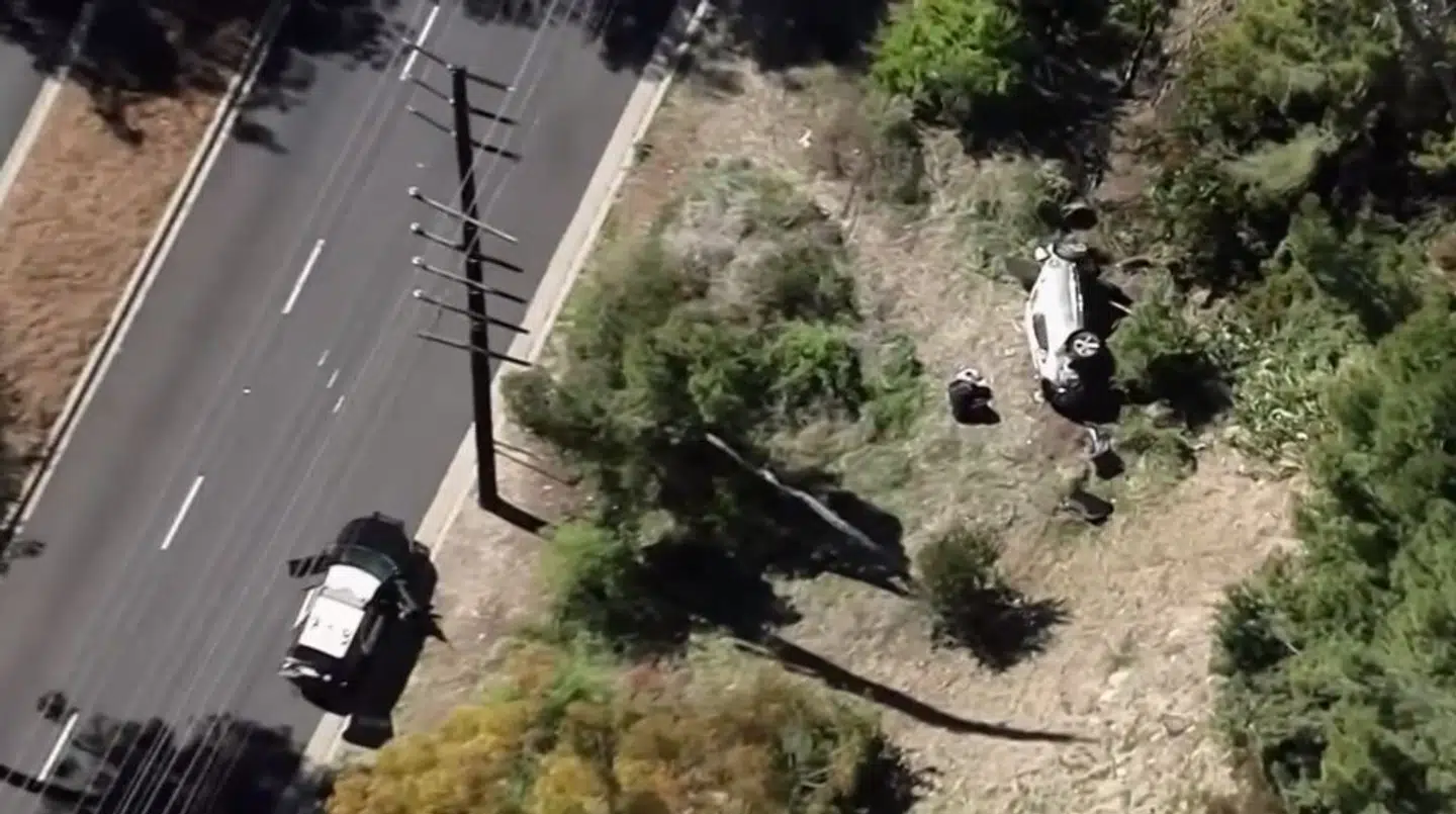 Tiger Woods måtte skæres fri af den sammenkrøllede bil.
