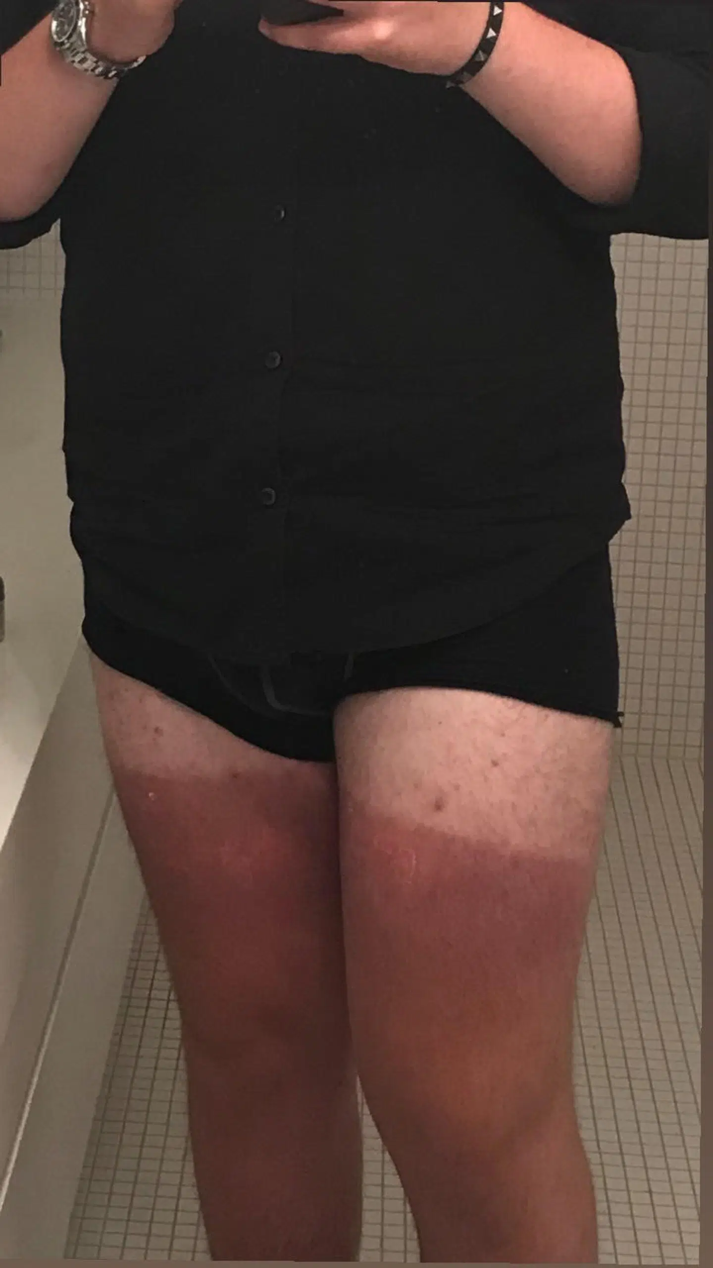 Det kunne de sidste 45 minutter. Som det ovenstående billede afslører, endte Mathias Nielsen med ildrøde arme og ben og en aftersun fattigere.