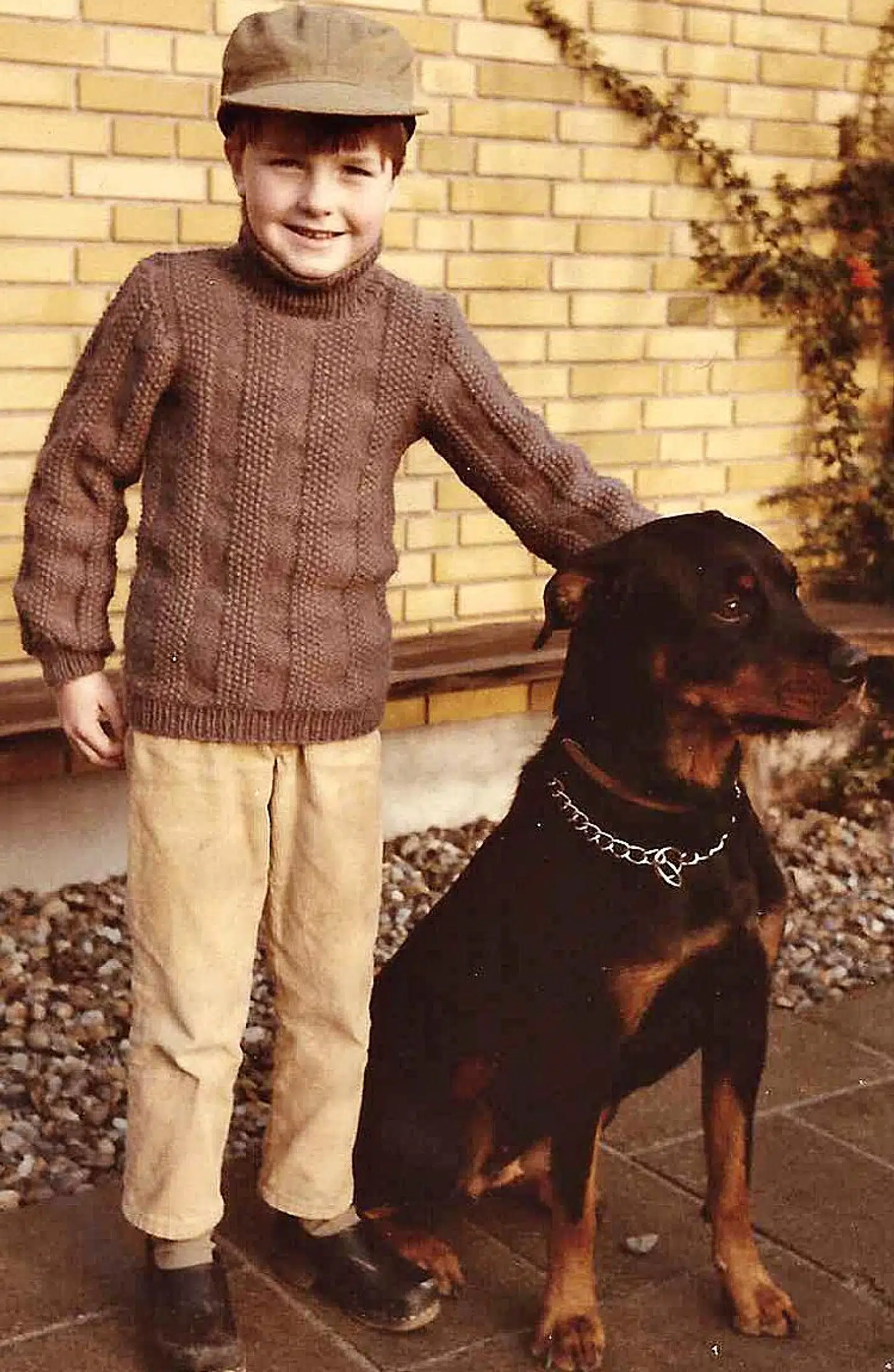 Jeg har forhørt mig hos mine forældre om, hvordan jeg var som barn, og de fortæller, at jeg som udgangspunkt altid var en grinende og glad dreng, som ikke var stille længe ad gangen. Der var rigtigt mange dyr i løbet af min opvækst, på et tidspunkt boede vi endda på en lille gård i Jylland, hvor min mor havde heste og får. Her stod jeg foran huset i Holbæk med min jernhandlerkasket på og vores Rottweiler Soffi, som jeg var nært knyttet til. Jeg tudede meget, da den blev aflivet. Jeg havde også en stor græsk landskildpadde, som i øvrigt stak af til Hillerød, hvor den efter en efterlysning blev fundet.