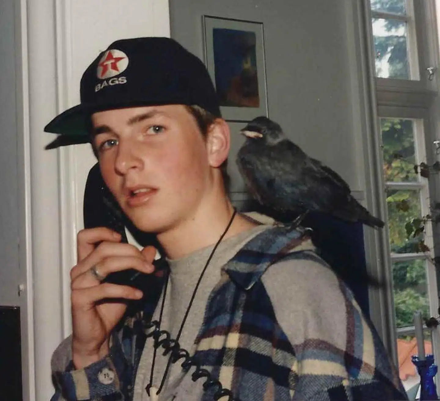 Den allike, jeg har på skulderen, kom lige pludselig og satte sig på skulderen af mig, mens jeg gik rundt i haven ved vores villa i Roskilde og slog græs. Meget overraskende, det måtte min mor ha’ et billede af. Jeg fodrede den med vådt brød, og det gik efterhånden op for mig, at den ikke havde tænkt sig at flytte sig fra min skulder. Når jeg prøvede at sætte den væk, fløj den tilbage. Vi ringede til Dyreværnet og de kom heldigvis og hentede den.