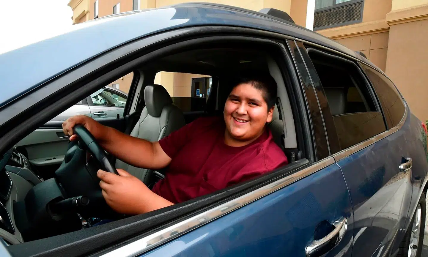Den unge mand kan derfor nu sættes sig ind i sin specialbyggede Peugeot 208 og køre af sted.