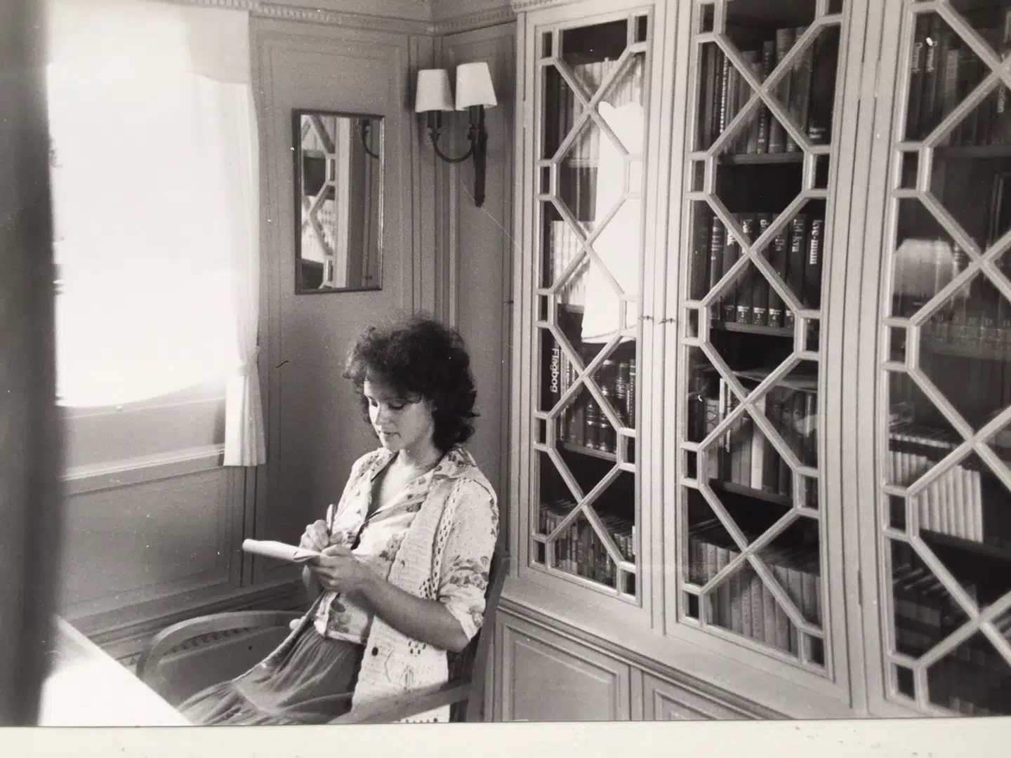 Jeg var vel noget af en fræk praktikant på Ekstra Bladet, for da pressen blev inviteret ud på Kongeskibet Dannebrog, så de kunne skrive begejstret om istandsættelsen til mange millioner, var jeg hende, der overvejede, om det var den fornuftigste måde at bruge skattemidlerne på. Vi blev præsenteret for alt det, der foregik ’upstairs’, men jeg sneg mig ned downstairs for at se, hvor slemt besætningen havde det i deres sovesal med hængekøjer og koøjer. Matrosernes levevilkår på Dannebrog stod i skarp kontrast til den royale familie. Da jeg kom op igen fra skibet, sneg jeg mig ind i Dronningens bibliotek og satte mig i hendes stol her, det blev set som meget respektløst. Jeg var en grænseoverskridende journalist, og blev jo fastansat, men jeg holdt op, fordi jeg var klar over, at det skrupelløse blev modtaget med kyshånd, og det ville ende med at forrå mig. Jeg forlod bladet og kom på Weekendavisen, indtil TV-Avisen lokkede.