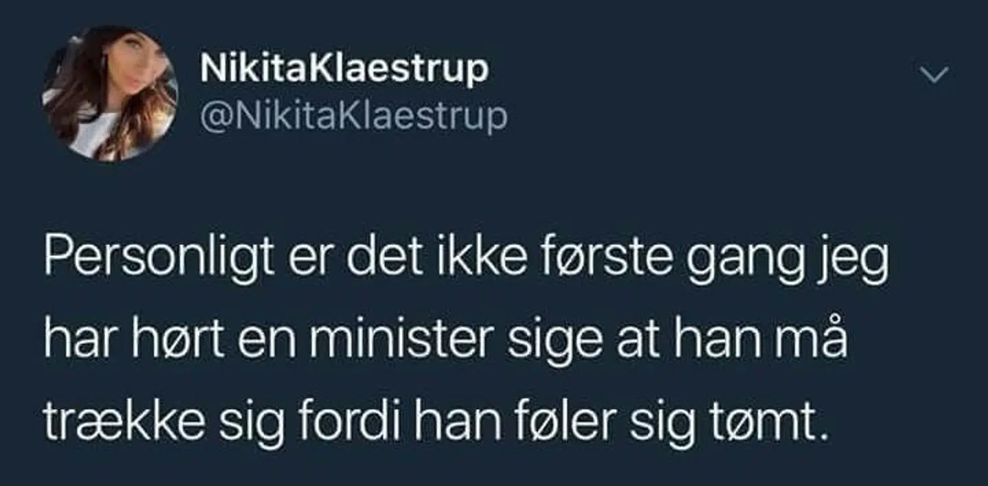 Nikita Klæstrup har lagt Twitter ned med sit tweet om minister-sex. Men der er ikke tale om egne erfaringer, forsikrer hun.