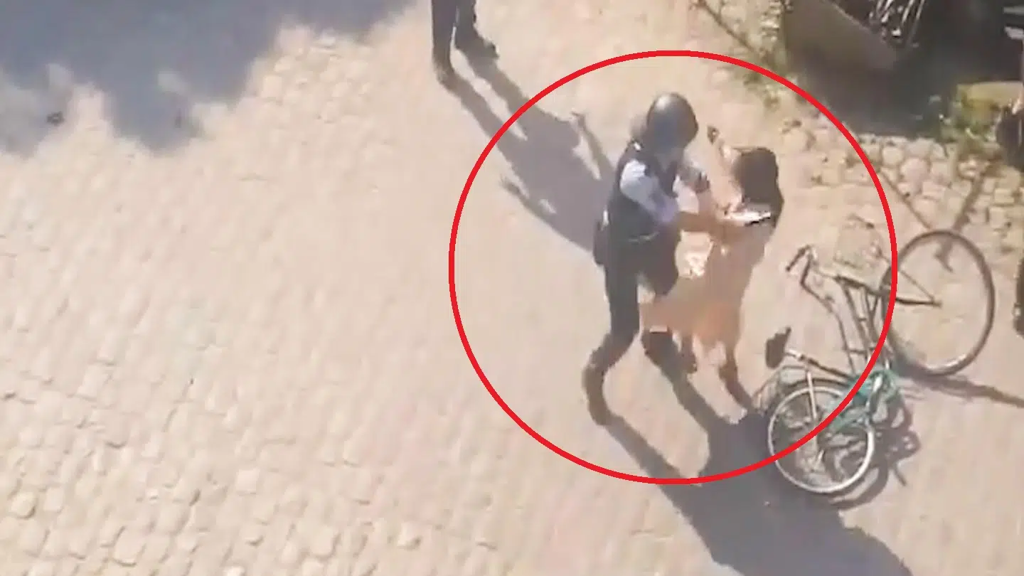 I en video, optaget under uroligheder på Christiania i sommer, bliver kvinden skubbet bagover af en betjent, så hun slår hovedet ned i brostensbelægningen.
