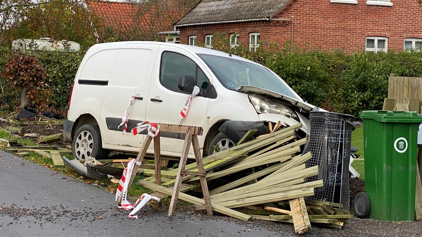 Bilen endte inde i en have – efter at have ramt flere genstande på sin vej.