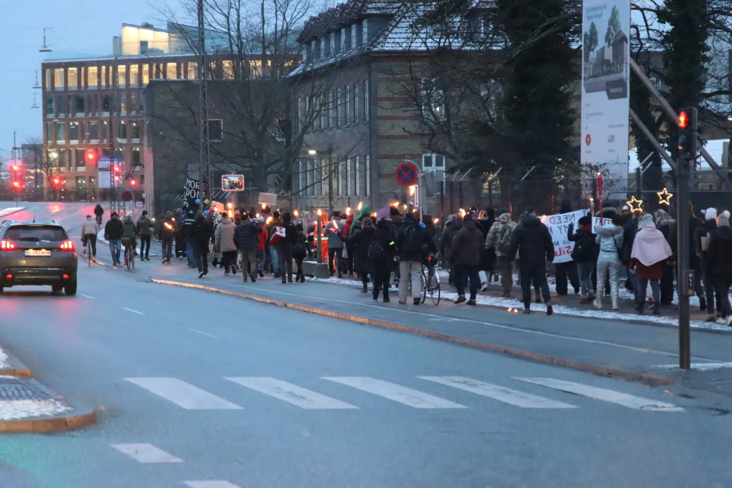 »Det er et fakkeloptog, og det forløber stille og roligt. De går lidt frem og tilbage derude, og vi er også til stede,« siger vagtchef Henrik Svejstrup.