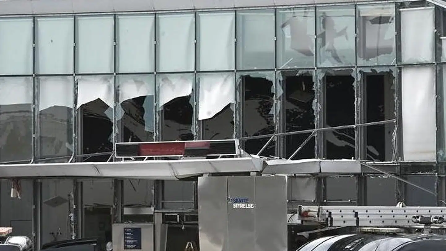 Det var tirsdag aften, at der pludselig lød et enormt brag fra Skattestyrelsen ved Nordhavn Station i København. Indgangspartiet blev sprængt i stykker.