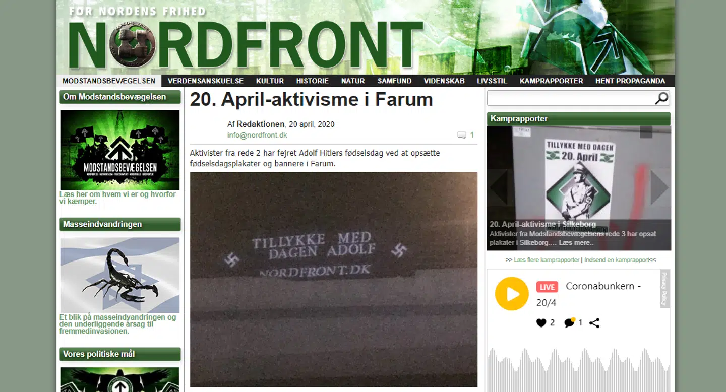 - Når man ser på Den Nordiske Modstandsbevægelse, er man antisemitiske og holocaustbenægtere, man laver sommerlejre for folk i bevægelsen, og man har en nazistisk familiepolitik på den måde, at kvinder opfordres til at være hjemmegående og få en masse børn.