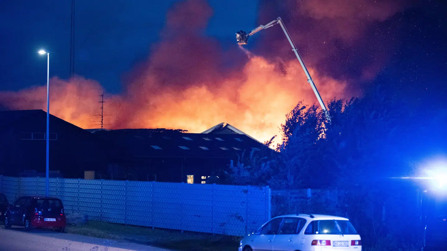 En industribygning i Sønderborg står sent onsdag aften i flammer.