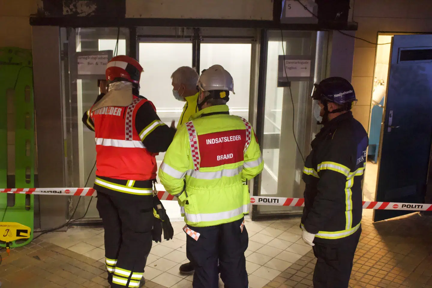 »Vi modtog en anmeldelse klokken 10.01, om en mand skulle være blevet fastklemt i en arbejdsulykke under en elevator.«