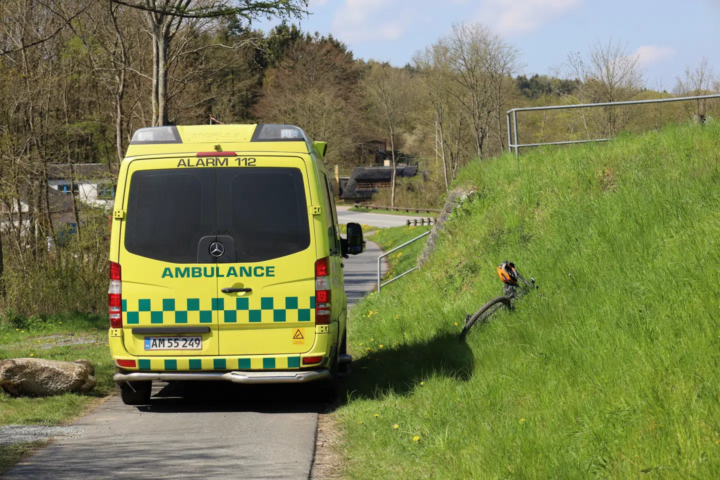 I begyndelsen kørte en ambulance til skoven ved Hylkedalsvej, men lægen vurderede efterfølgende, at man havde brug for en helikopter: