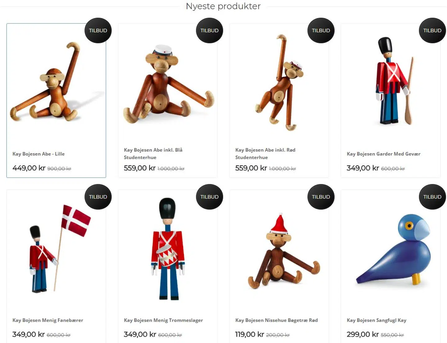 Hjemmesiden Designfamilie.com sælger Kay Bojesens ikoniske 'abe' og andre figurer til uhyre billige penge.