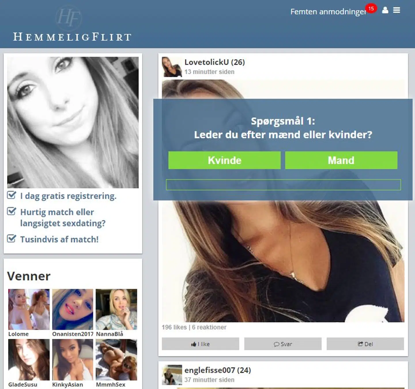 Bliver man ved med at trykke videre, får man en række spørgsmål om sine seksuelle præferencer og ender til sidst på hjemmesiden: www.hemmeligflirt.com.