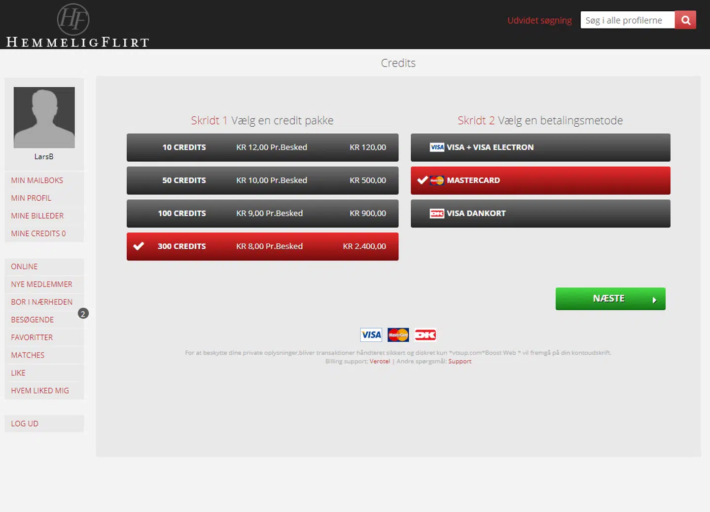 Når man er inde på dating-siden, vil man blive spurgt om, hvorvidt man vil betale nogle penge for at få lov til at sende beskeder til kvinder.