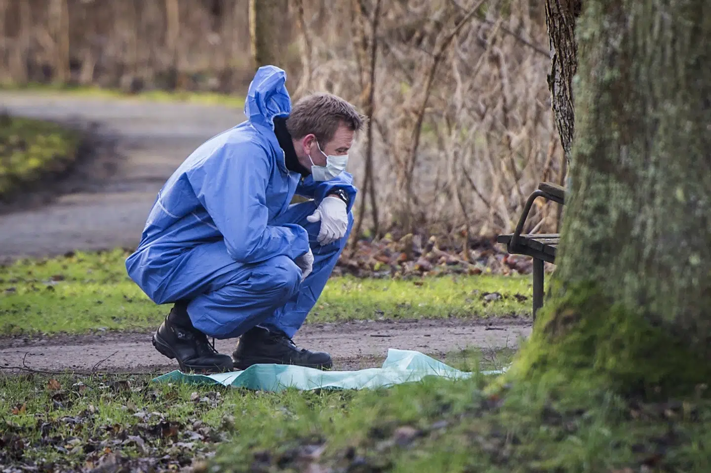 Flere retsteknikere er i gang med at undersøge bænken, hvor de har taget den øverste planke af, og der er flere hundepatruljer i området, der leder efter spor. Politiet har endnu ikke nyt om, hvorvidt der er fundet DNA-materiale på bænken. Men både bænken, området, tæppet og barnet er sikret.