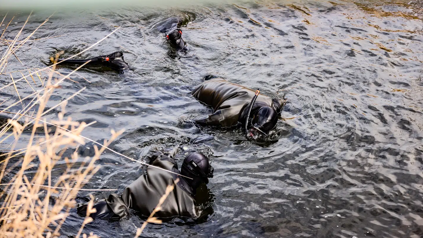 Billeder af eftersøgningen viser, at politiet også har dykkere i vandet.