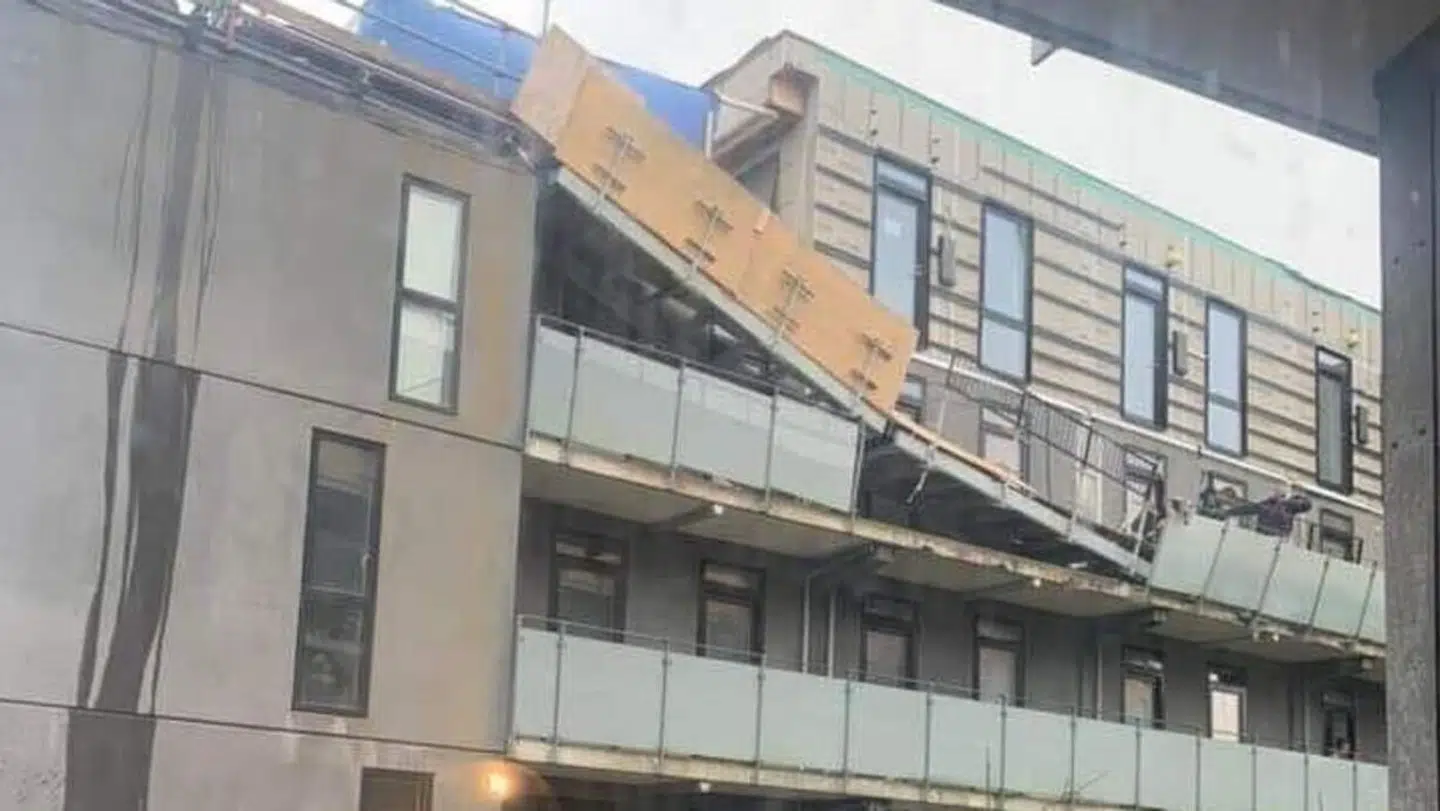 Politiet advarer nu beboerne i nærheden af den ejendom på Munkebjergvænget i Odense, hvor en svalegang fredag er styrtet sammen.