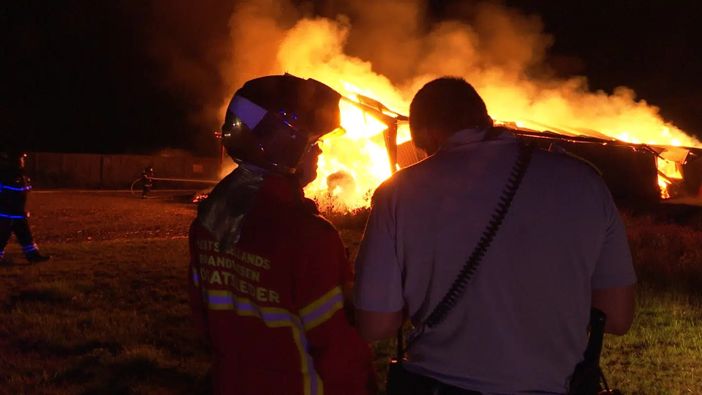 »Laden var netop blevet fyldt op med bigballer, da branden opstod,« siger vagtchef ved Midt- og Vestsjællands Politi, Thomas Hartmann.